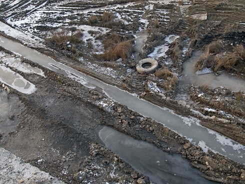 Len tmavé fľaky prezrádzali kde boli predtým jazierka plné života.