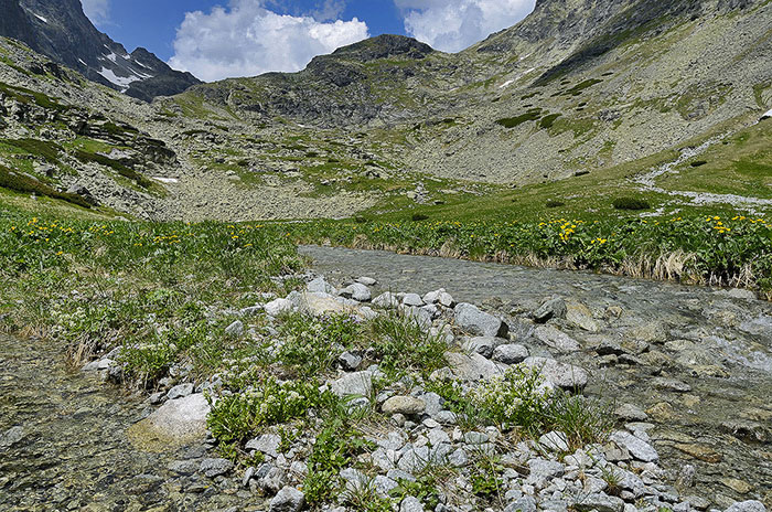 Alpínske rastlinstvo pri potôčikoch.