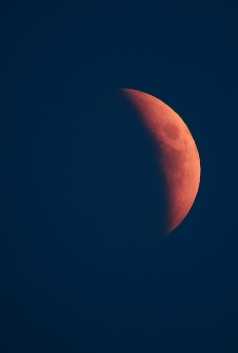 Boli prekvapení, že aj v hustom tieni je možné niečo vidieť, Mesiac je totiž čiastočne osvetľovaný rozptýleným svetlom z atmosféry Zeme. Zaujímali sa i o farbu Mesiaca, tentokrát výrazne červenú, lebo farba môže byť pri zatmení v škále od sivej, cez oranžovú až po červenú a súvisí so znečistením atmosféry, s rozptylom svetla na prachových časticiach. Na mimoriadnej tmavosti tohto zatmenia sa pravdepodobne podpísali aj nedávne sopečné erupcie. Ľudia ku podivu vydržali celú dlhú fázu úplného zatmenia a čakali na výstup, no už ku koncu úplného zatmenia sa začali prevaľovať mraky, Mesiac chvíľami pripomínal skôr planétu Mars a tak sme tušili, že výstup z tieňa si veľmi neužijeme. Ako sa blížil k ľavému okraju tieňa, stával sa svetlejším a tesne pred koncom bolo dobre vidno jednotlivé moria a krátery (obr. 6).