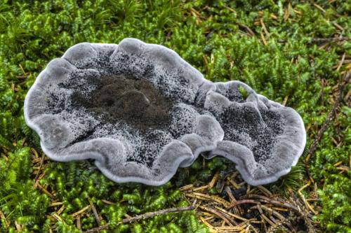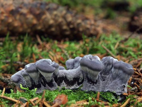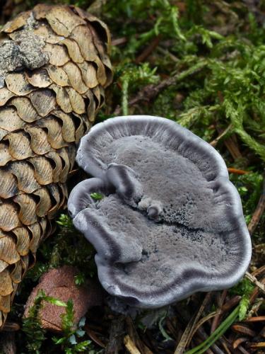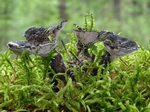 Calodon niger (Fr.) Quél.; Hydnellum cinereum (Bull.) P. Karst.; Hydnellum nigrum (Fr.) P. Karst.; Hydnum cinereum (Batsch) Pers.; Hydnum nigrum Fr.; Hydnum nigrum var. nigrum Fr.; Hydnum suberosum var. cinereum BatschZdroj: -
