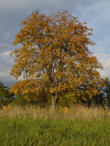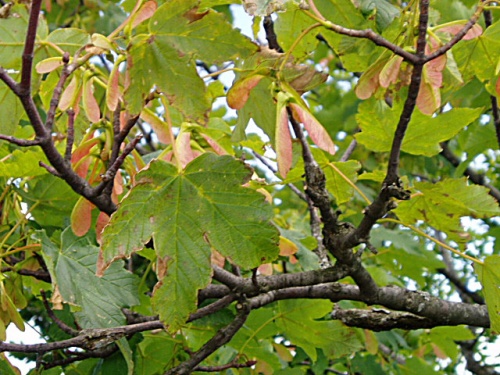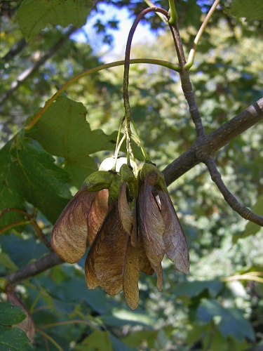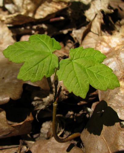 Opis: Strom vysoký až 30 m. Kôra na starých kmeňoch sa šupinovite odlupuje. Púčiky sú zelené. Protistojné listy majú 5-7 lalokov, sú dvakrát tupo zubaté, na vrchu tmavozelené, na rube skoro sivé. Zelenožlté kvety rozkvitajú v previsnutých strapcoch až po vyrastení listov. Plody sú dvojnažky, ktoré sú lysé alebo riedko chlpaté s krídlami a rozostavané v ostrom uhle. Lesný druh rozšírený od nížin až po horský stupeň. Kvitnutie: IV.-V.
