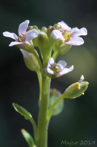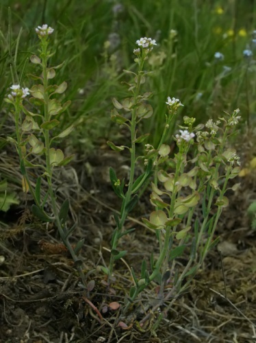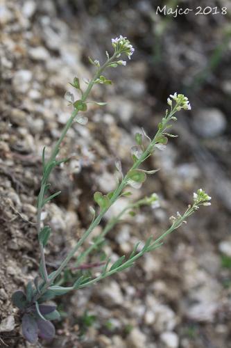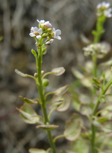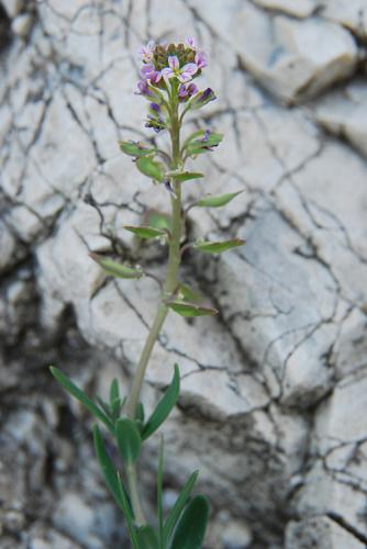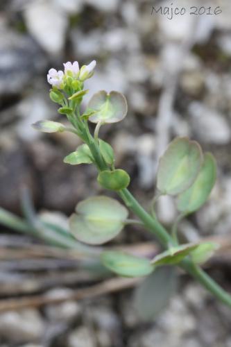 Opis: Dvojočná až trváca bylina s drevnatejúcim koreňom a bázami stoniek. Dosahuje výšku 5 - 20 cm. Listy na báze stonky takmer protistojne zblížené, no netvoria ružicu, stredné a horné listy striedavé, kratučko stopkaté, sivozelené, slabo mäsité, holé. Kvety sú usporiadané v chocholíkatých strapcoch, ktoré sú spočiatku husté, v čase plodov oddialené. Kališné lístky zelené, široko obrátene vajcovité s úzkym suchoblanitým lemom. Korunné lupienky obrátene vajcovité, ružové až fialové, menej často i biele. Plodom je sploštená, dvojpuzdrová, nezriedka i jednopuzdrová šešuľka so širokými krídlami.