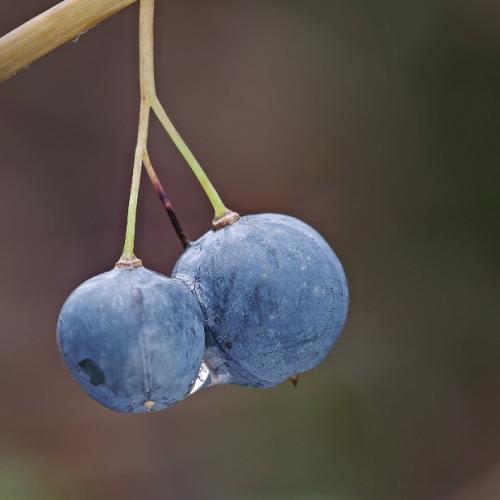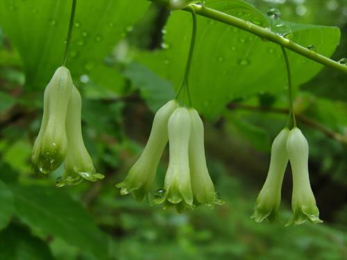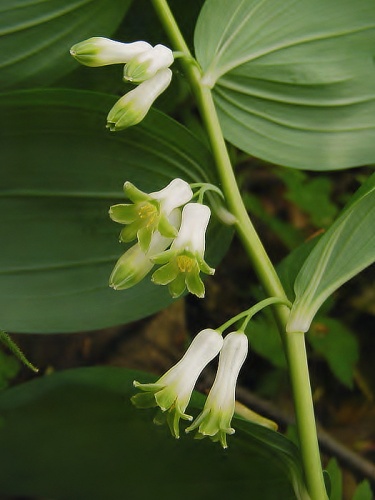 Opis: Trváca bylina vysoká 30-80 cm. Byľ previsnutá, valcovitá, holá. Listy dvojradovo striedavé, vajcovité, sediace, výrazne žilkaté, smerom k vrcholu sa zmenšujú. Kvety v pazuchách listov po 3-6 na krátkych stopkách. Okvetie valcovité, k vrcholu sa rozširuje, celé biele so zelenými škvrnami na cípoch. Bobule modročierne, oinovatené.