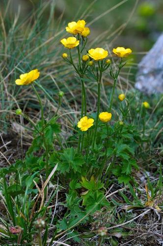 Opis: Trváca bylina vysoká 5-30 cm, chlpatá. Listy 3-segmentové, okrúhleho obrysu. Kvetné lôžko celé chlpaté, korunné lupienky 10-15 mm veľké, mierne vykrojené. Rozšírenie: Rastie zvyčajne na vápencovom podklade horského až subalpínskeho stupňa. Kvitnutie: V.-VI.