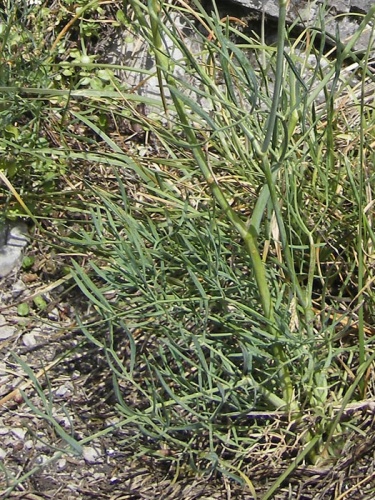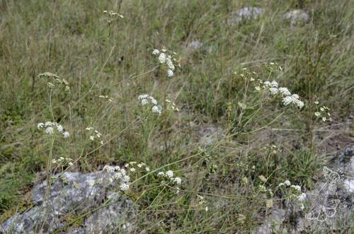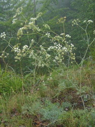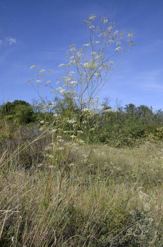 Dvojročná až trváca rozkonárená bylina vysoká 40-100 cm. Okolíky majú 7-20 lúčov, listene obalčeka 2x kratšie ako okolíček, nažky holé s pomúčeným povrchom. Listy dvojito perovito zložené, výčnelky dlhé kopijovité. Byľ holá, výrazne sivo oinovatená. Rastie na stepných stráňach a skalách na výhrevných podložiach od nížin po pahorkatiny.