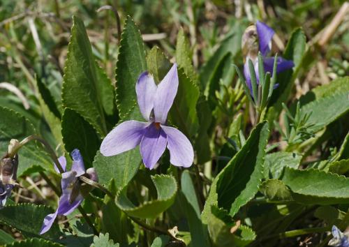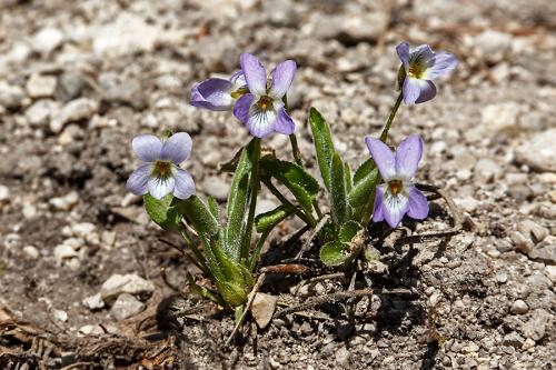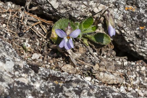 Opis: Trváca, do 10 cm vysoká bylina s vystúpavým podzemkom. Stopka listov dlhšia ako čepeľ, šikmo naspäť chlpaté. Čepeľ max. 1,5x dlhšia než široká, vrúbkovaná, srdcovitá, chlpatá. Palisty kopijovité, zubaté, brvité. Kvetné stopky chlpaté, listene v hornej polovici stopky. Kvety slabo voňavé až nevoňavé, kališné lístky 5 - 7 mm dlhé, ostroha biela. Plodom sú chlpaté tobolky.