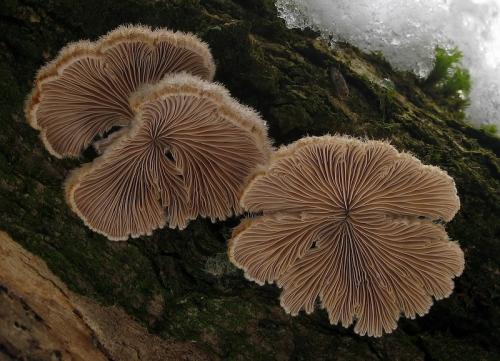Agaricus alneus L.; Agaricus alneus Reichard; Agaricus multifidus Batsch; Apus alneus (L.) Gray; Daedalea commune (Fr.) P. Kumm.; Merulius alneus (L.) J.F. Gmel.; Merulius alneus (Reichard) Schumach.; Merulius communis (Fr.) Spirin & Zmitr.; Schizophyllum alneum J. Schröt.; Schizophyllum alneum (Reichard) Kuntze; Schizophyllum alneus (L.) Kuntze; Schizophyllum commune var. multifidum (Batsch) Cooke; Schizophyllum multifidum (Batsch) Fr.Zdroj: -